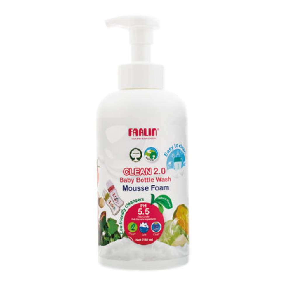 وصف المنتج: منظف زجاجات FARLIN-CLEAN 2.0 بحجم 750 مل مع مضخة الرغوة يوفر تنظيفًا فعالًا وآمنًا لزجاجات الرضاعة وأدوات الأطفال. يحتوي على تركيبة لطيفة وخالية من المواد الكيميائية الضارة، ويأتي مع مضخة رغوة لتوفير الرغوة بسهولة وسرعة أثناء الاستخدام. مثالي للاستخدام اليومي في تنظيف بقايا الحليب والأوساخ من أدوات الأطفال.